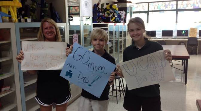 I knew I had done lots of good quality training, I was the lightest I had ever run (64 kilos), I was strong due to a great diet of quality foods, and had tapered very well so that I was well rested mentally and physically for this challenge. I also had the picture of my beautiful children in my head. Their wonderful and inspiring sign that they did with our friends Angela and Dennis gave me a world of strength.