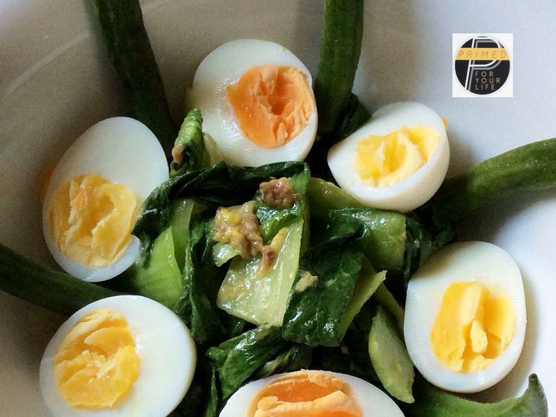 Steamed fi September 4, 2017 800 × 600 Steamed eggs with steamed okra and bok choy with Bagna Caude sauce.