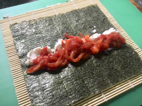 Ensure you wet the end of the Nori sheet before rolling so it sticks together.