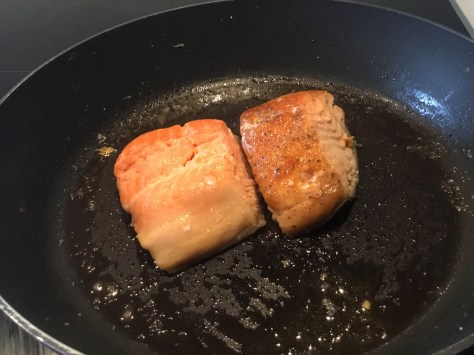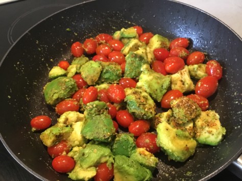 Add butter to the pan then fry avocado pieces