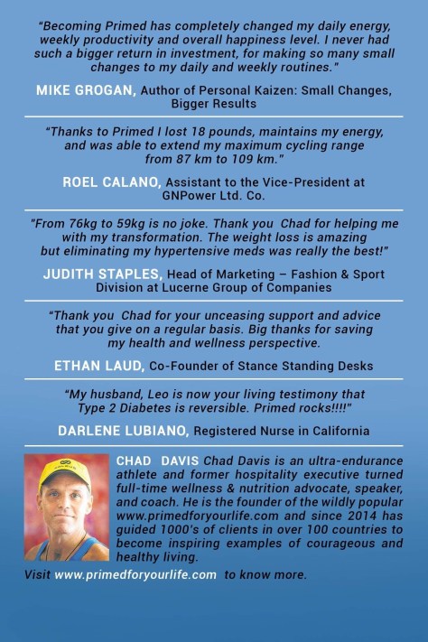 (3) Get an old (or current) pic of you when you were not as fit and healthy and also carry that around with you. This then serves as a motivation to eat Primed and get healthier (coincidentally slimmer too). Once Primed you will learn that food is just #4 with other factors more important.