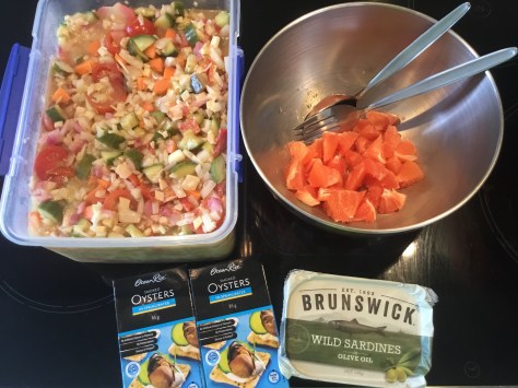 I then added oysters in spring water, sardines in olive oil and grapefruit into my breakfast bowl.